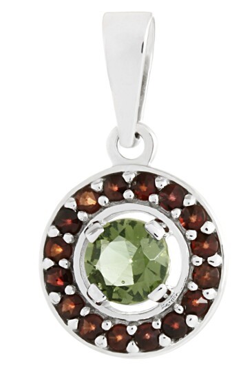 Přívěs ze stříbra 925/1000 osázený českými granáty a vltavínem s povrchovou úpravou rhodiováním.