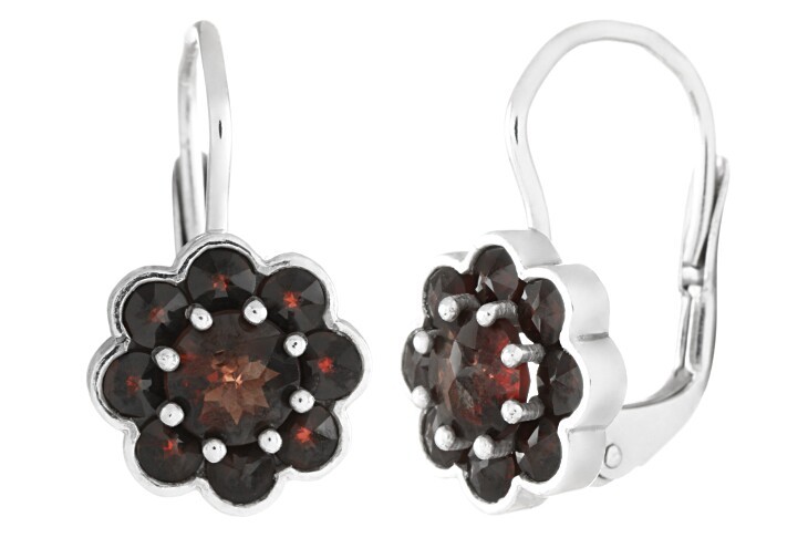 Náušnice ze stříbra 925/1000 osázené českými granáty s povrchovou úpravou rhodiováním.