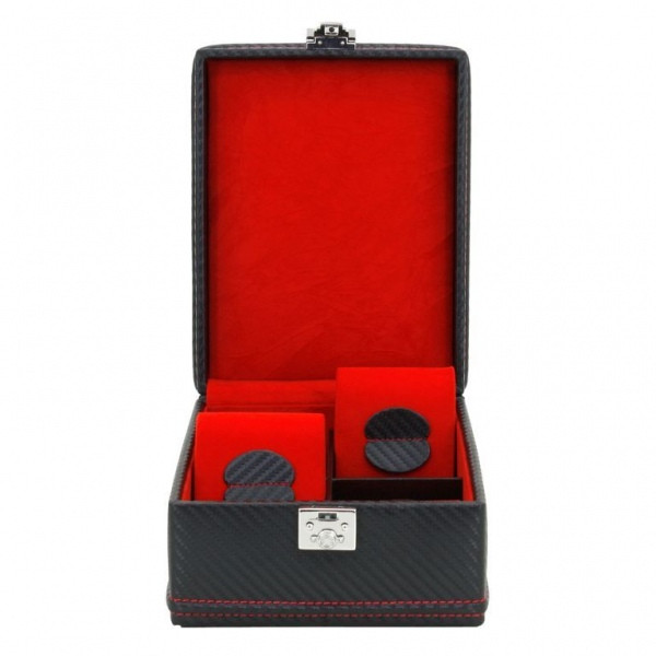 Kazeta na 4 kusy hodinek od německé firmy Friedrich Lederwaren se vyznačuje velmi kvalitním zpracováním. Je vyrobená v imitaci karbonu ze syntetických materiálů.